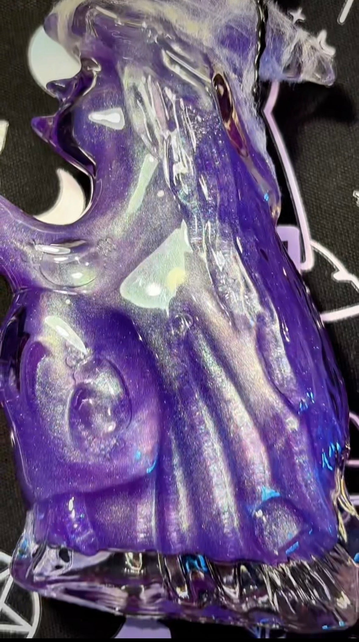 - Couleur : Transparent violet au repos, une fois remuée la couleur devient violet bleu pailletées